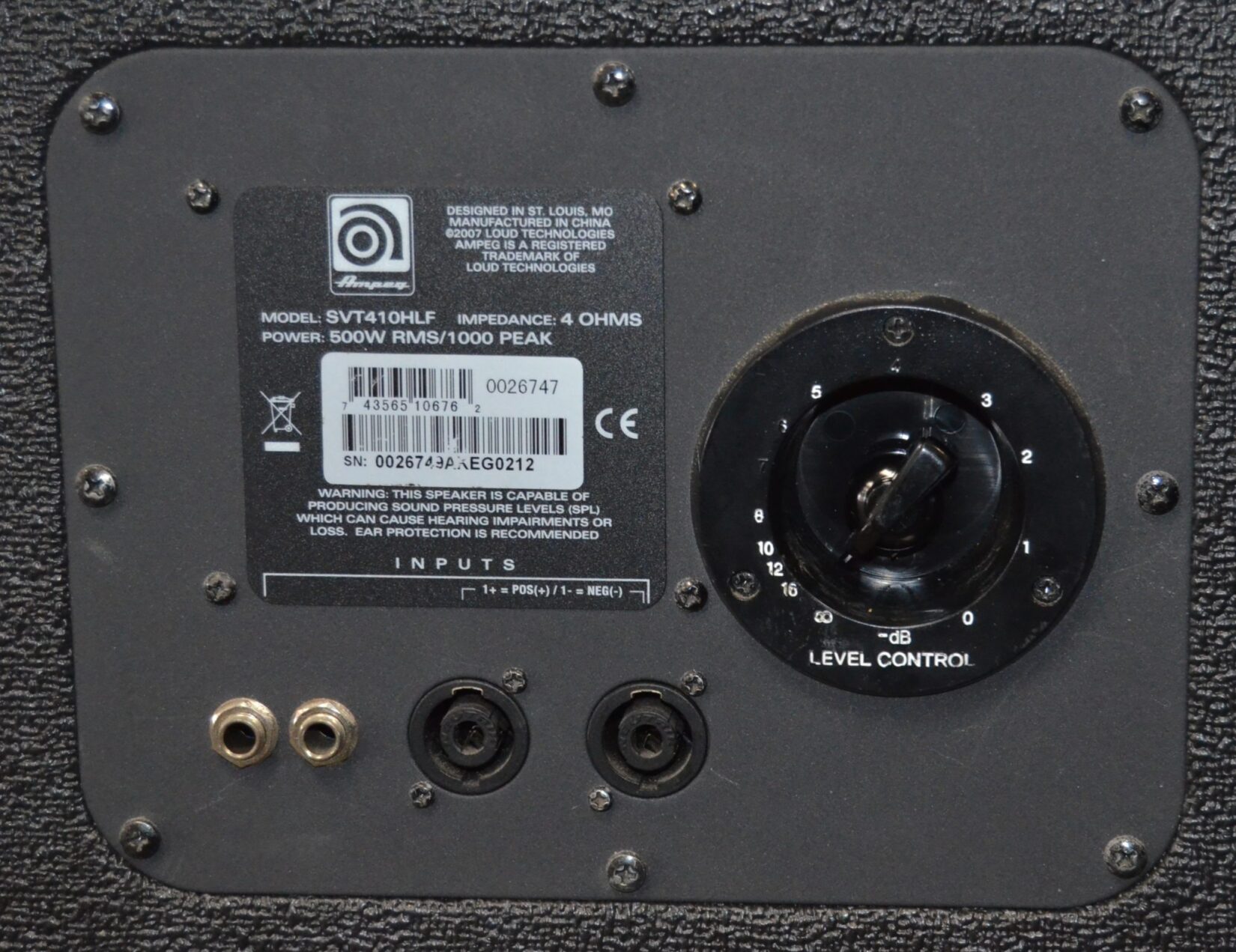 Designed and assembled in the U.S.A., the Ampeg SVT-410HLF is the ultimate in full-range Ampeg tone. Built to handle up to 500 watts, with portability to spare, the Heritage SVT-410HLF is the obvious choice for touring professionals and weekend warriors.