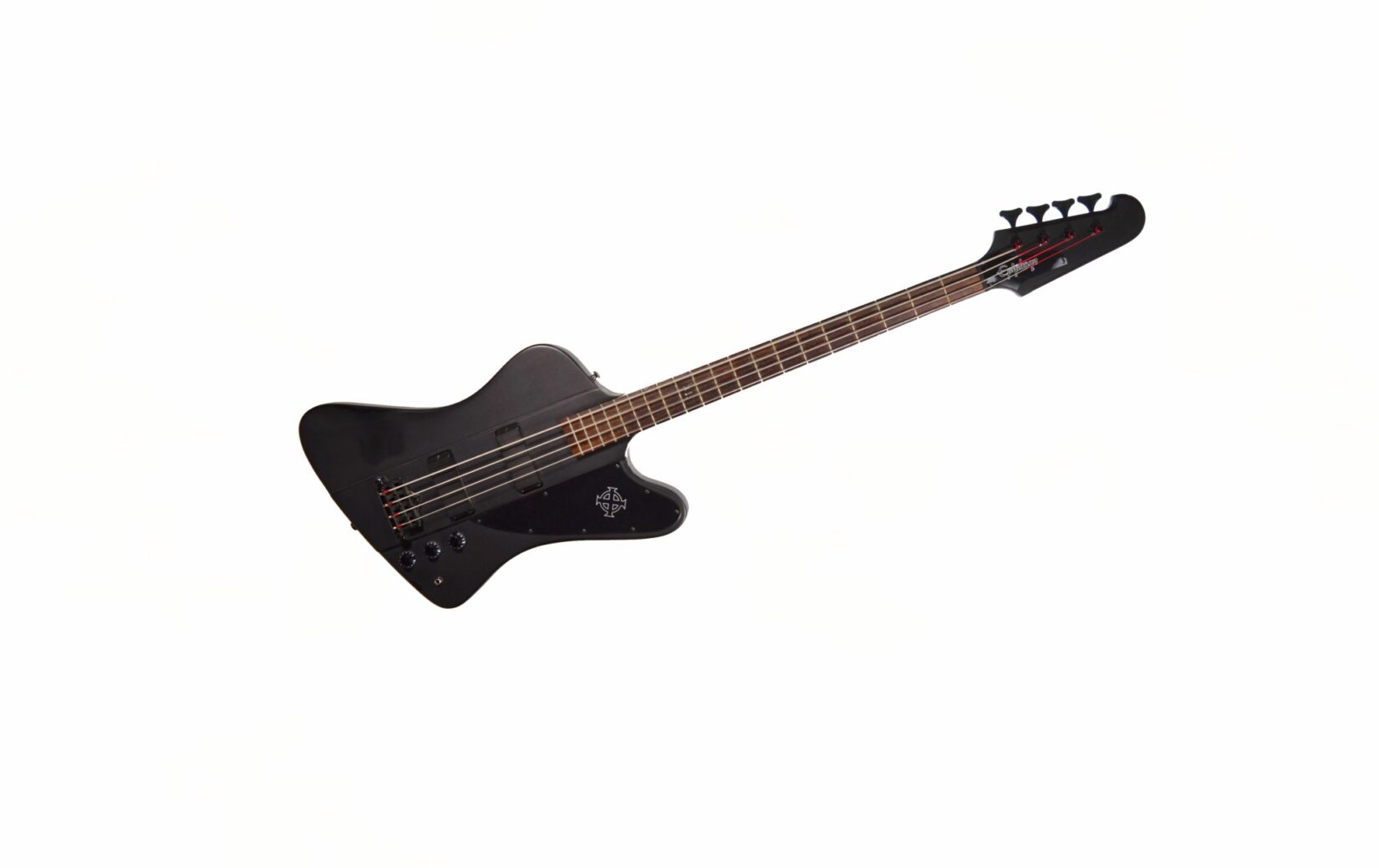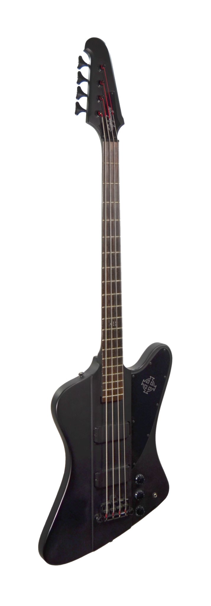 The Epiphone Thunderbird Gothic Bass Guitar features a Mahogany Body, bolt-on hard maple neck with rosewood fingerboard and a flat black finish. Explore the dark side with the classic look and feel of the legendary Thunderbird Bass, add 2 ceramic TB Plus bass pickups and gothic appointments and you’ve got a bass that is made to rock. The pickups translate into a natural resonance and growling tone. The neck profile is fast and very comfortable while the satin black body plus black hardware and XII inlay at the 12th fret make this bass a joy to play.