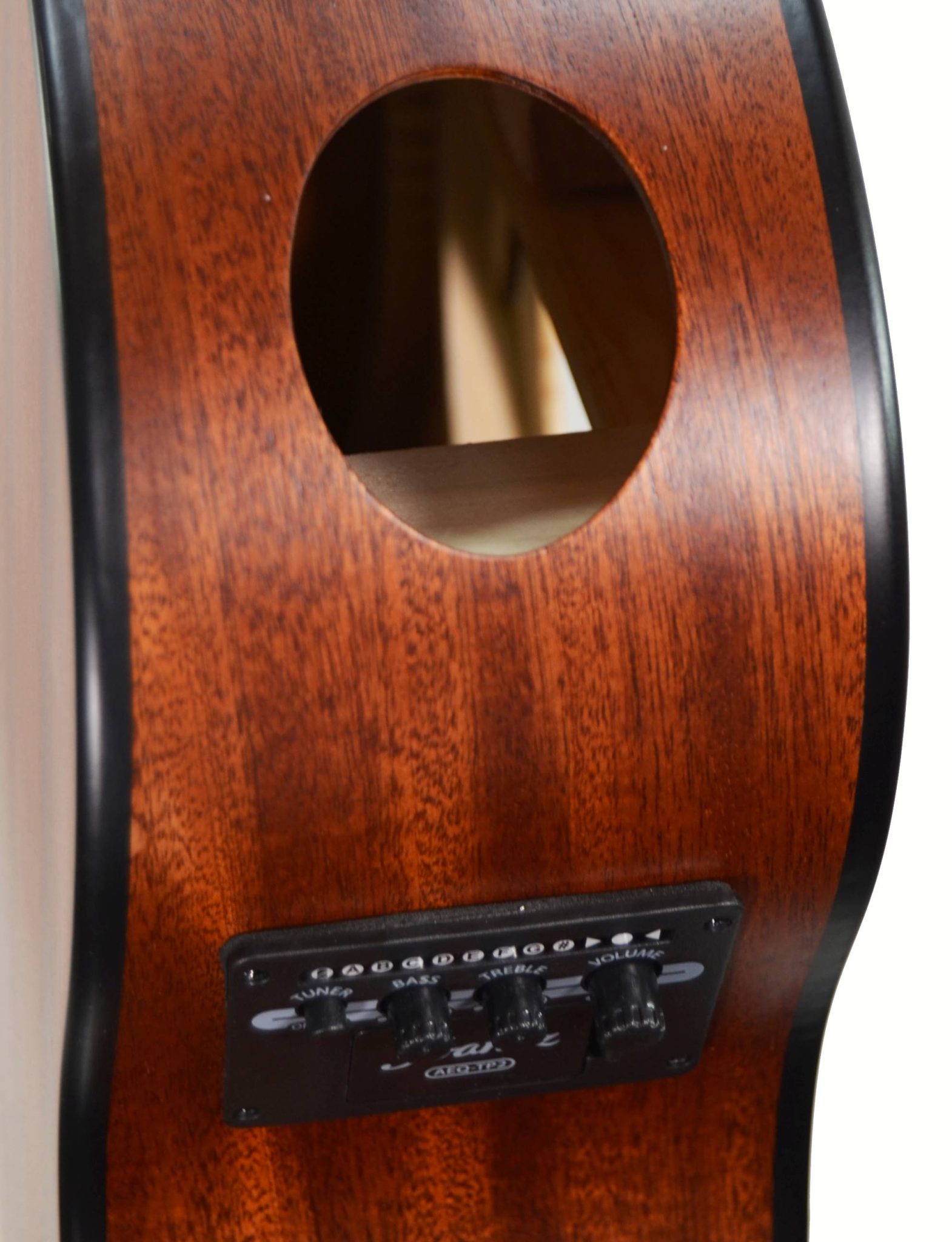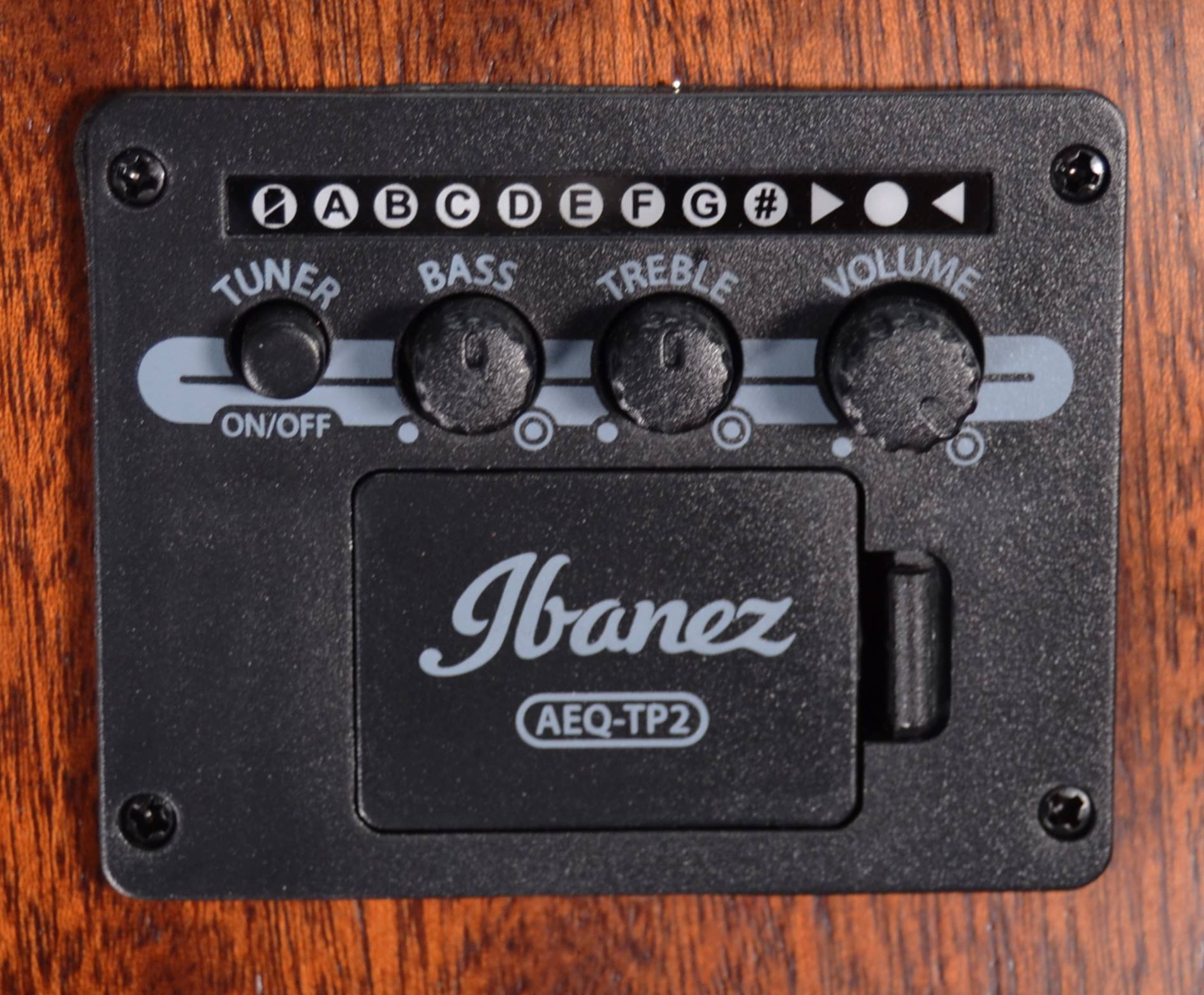 The Ibanez AEQ-TP2 preamp provides the extra punch of on-board EQ along with a convenient and easy-to-read digital tuner and 2-band EQ, located on the instrument’s upper bout.