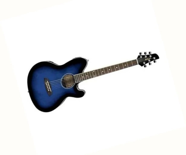 The Ibanez TCY10ETBS is a Talman series acoustic-electric guitar featuring a distinctive double-cutaway body, spruce top, sapele (or mahogany in older models) back/sides, and a comfortable okoume neck with a purpleheart fingerboard/bridge, finished in transparent blue sunburst. Designed for electric players, it offers a shallower, lighter build with an Ibanez AEQ-2T preamp and built-in tuner for amplified performance, blending electric comfort with acoustic sound