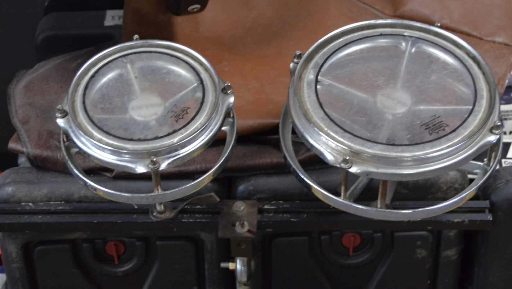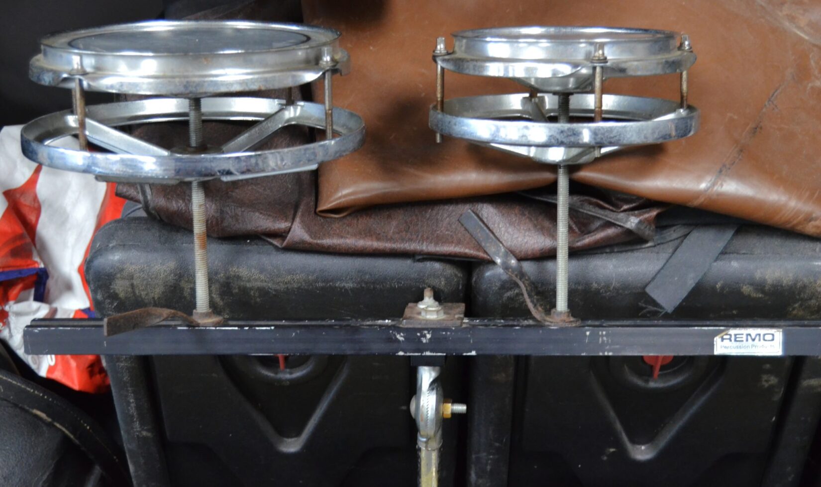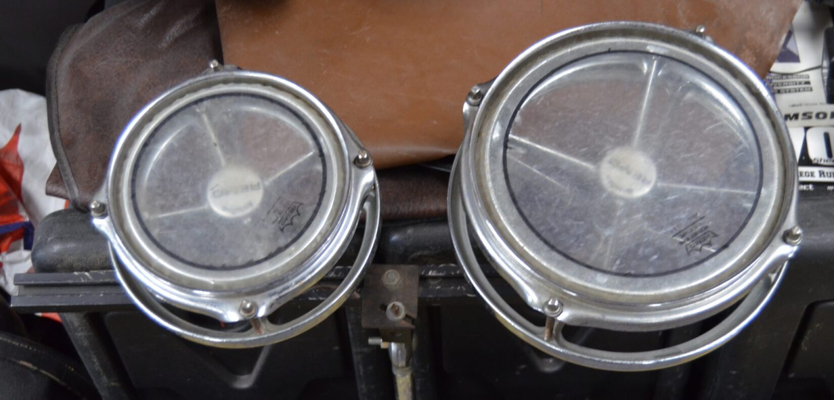 These two Roto Toms are in good condition. There is one 6″ and one 8″ tom only. The mounting bar is included, however, there is no stand base available with these drums. They could easily be mounted to an existing stand or hardware using a mounting clamp, or if you have a stand base you could mount these drums that way too.